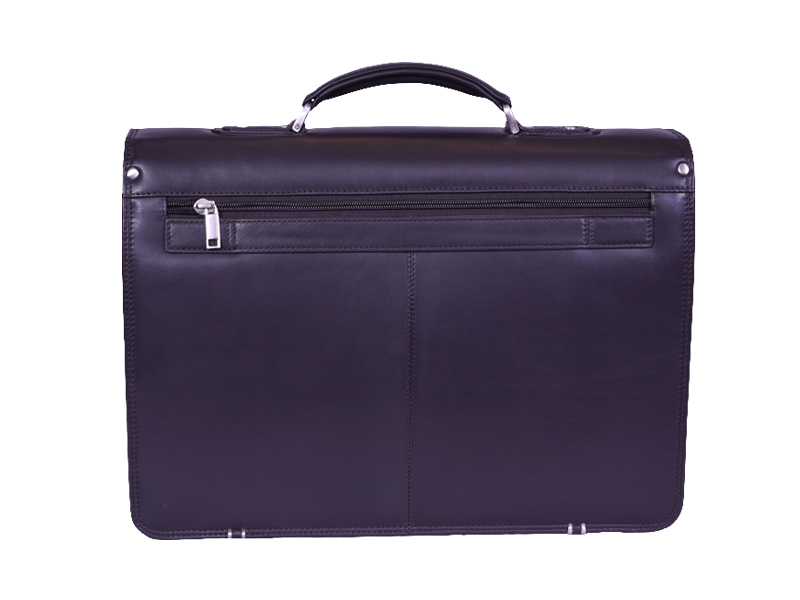 Two pockets with zipper on the front side. Double compartments with the central compartment having a zipper, a zipper pocket present on the back part of the inside along with computer padding. A computer organizer (pen, phone, card, diary) in the center and a zipper pocket on the back part of the outside. The bag is completed with a trolley patty, hand handle & a shoulder strap.